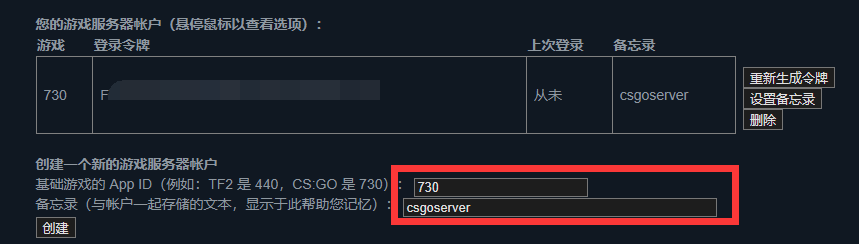 4.然后我们前往申请Token的地方进行申请服务器令牌:Steam 社区 :: Steam 游戏服务器帐户管理